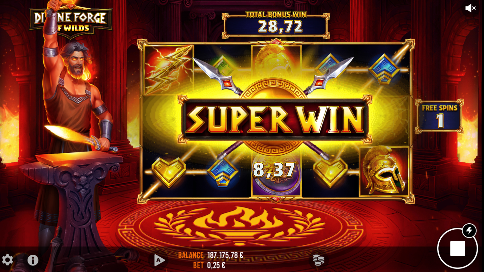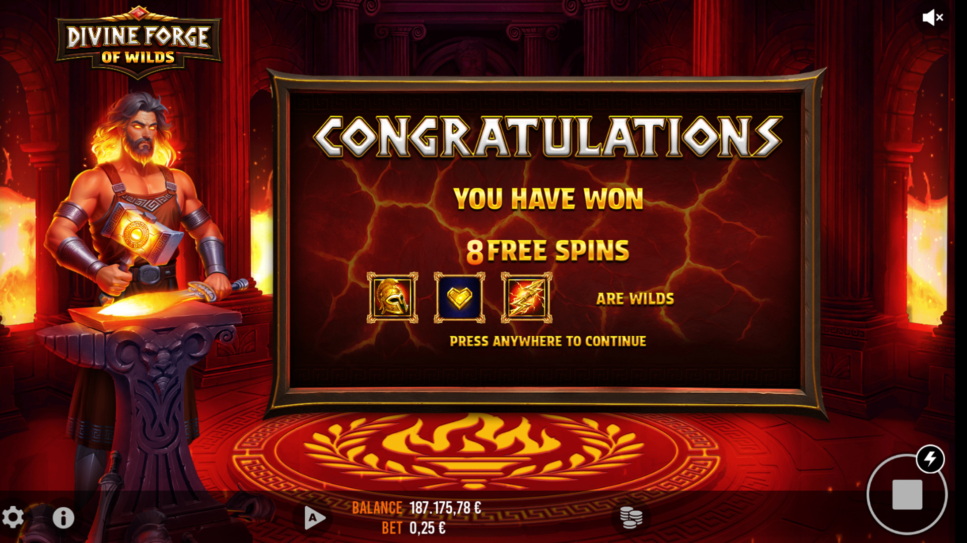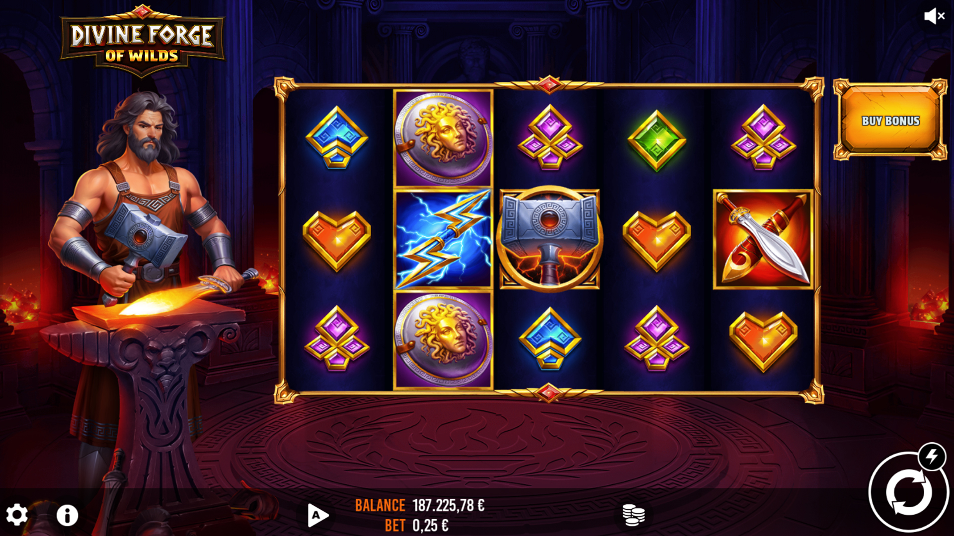 Step into the heart of ancient myth with Divine Forge of Wilds, a Greek mythology-inspired slot set in the molten depths of Hephaestus’ legendary forge. Surrounded by roaring flames, smoke, and steel, the God of Blacksmiths crafts powerful weapons destined for the gods of Olympus.