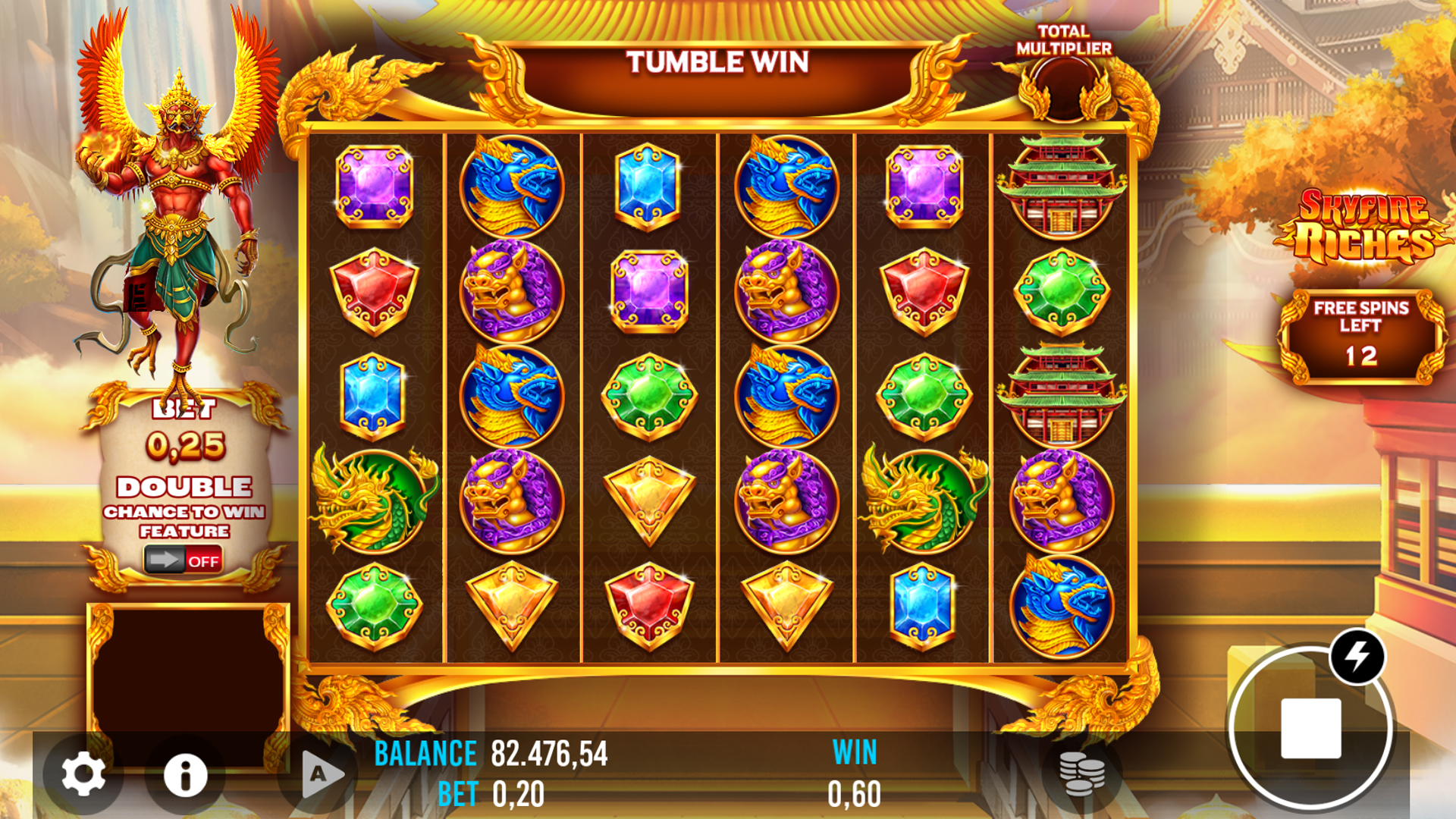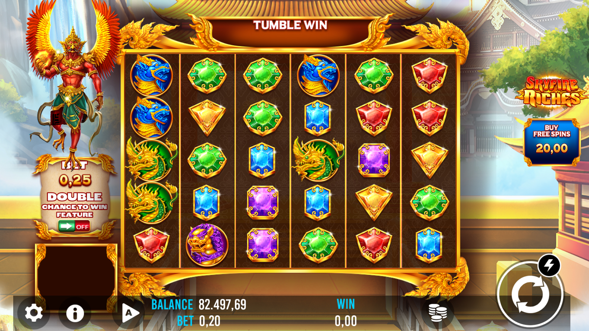 Step into Skyfire Riches, where adventure meets fortune on a majestic 6x5 reel set. Experience the thrill of tumbling wins, engaging free spins, and soaring multipliers that can ignite the skies with massive rewards. Every spin brings you closer to unlocking the temple’s greatest treasures.