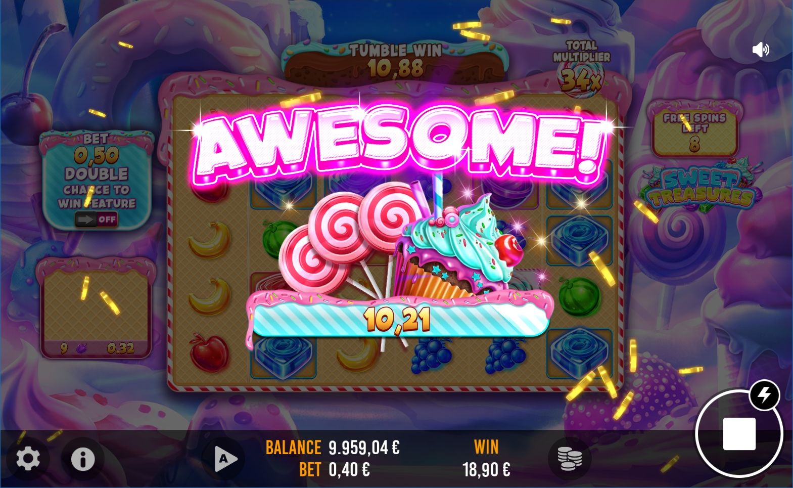 Step into the enchanting world of 'Sweet Treasures,' a captivating tumbling slot game set in a land of candy wonders. Here, colorful reels brim with sweet treats, from luscious lollipops to gummy bears, cascading to form delightful combinations. Each spin is an adventure through this sugary paradise, offering a whimsical journey filled with chocolaty delights and charming characters. 'Sweet Treasures' invites players to a delightful escapade where confectionery dreams and sugary winnings blend in a vibrant, candy-coated universe.