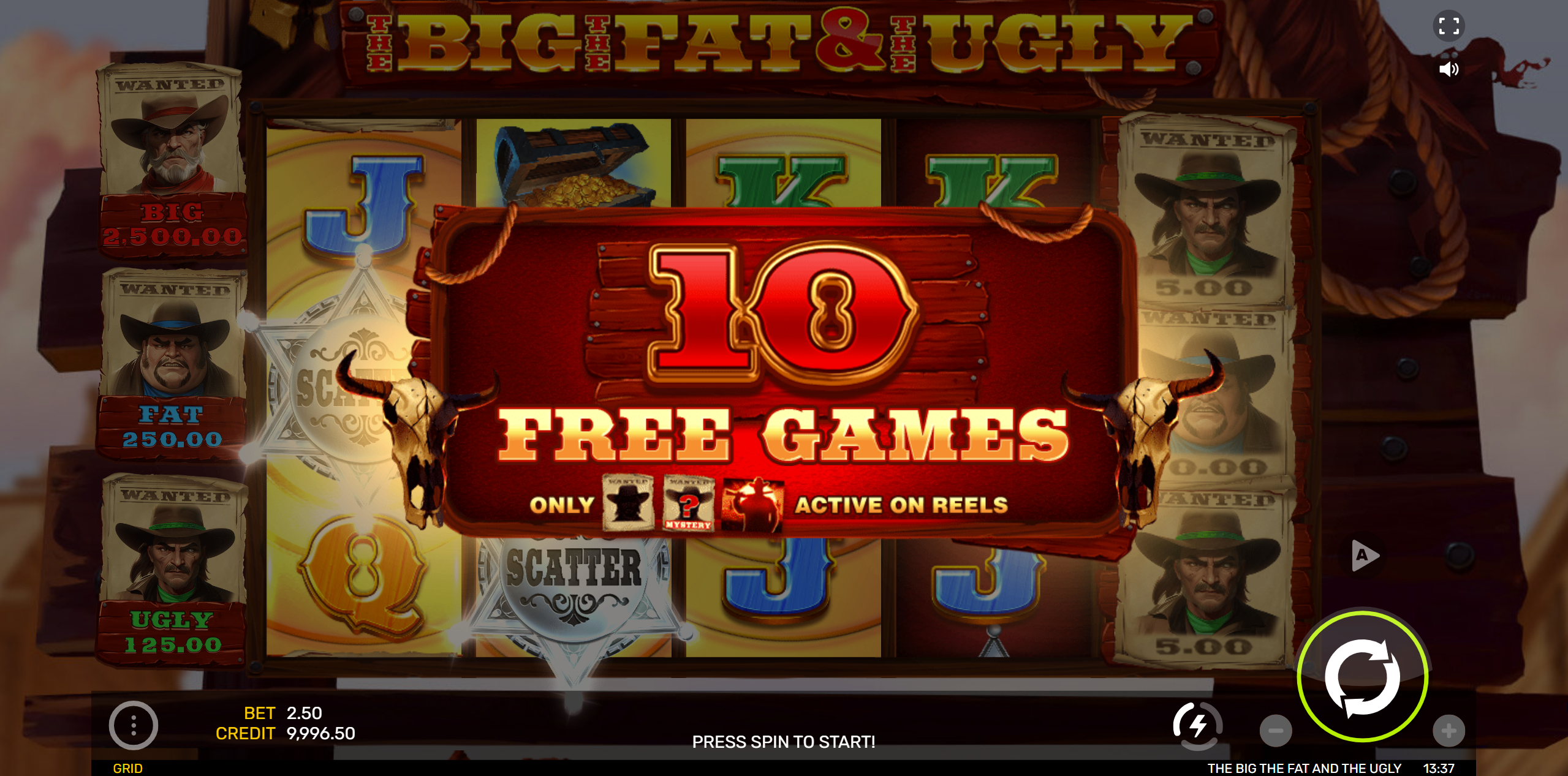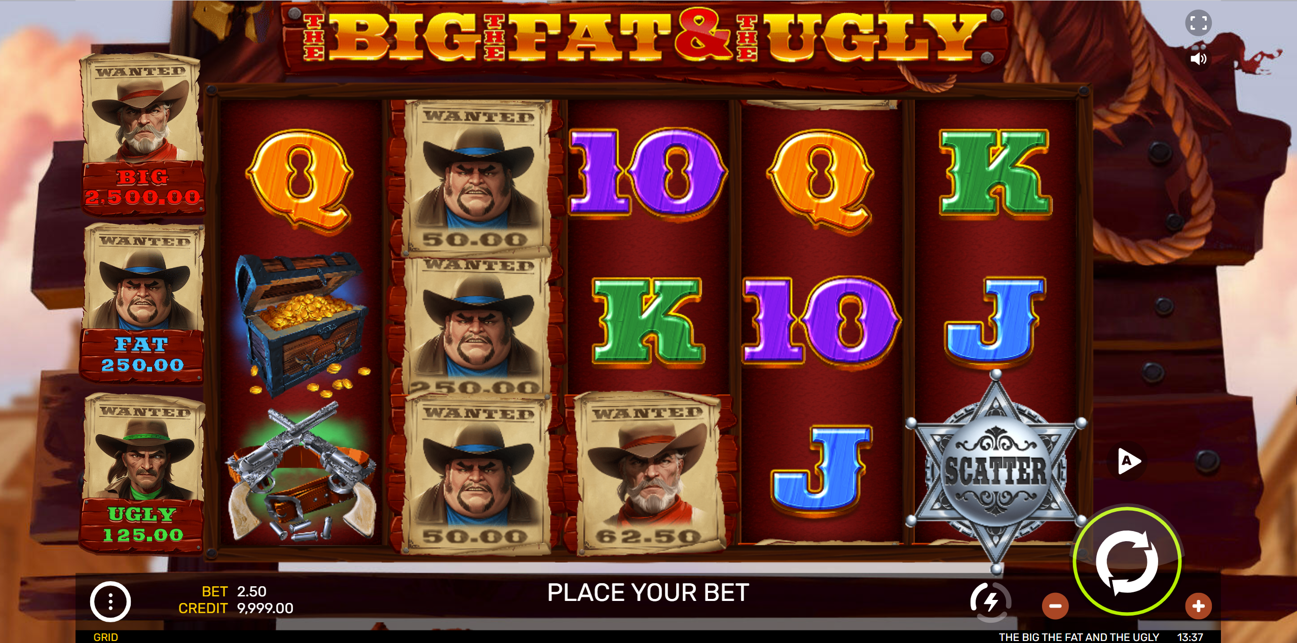 "The Big The Fat and The Ugly" takes you on a thrilling journey to the rugged Wild West, where outlaws and fortune-seekers roam. This slot game features a lively town backdrop, complete with saloons, wanted posters, and dusty streets. Spin the reels and join the chase for notorious bandits, with each spin bringing the possibility of a big showdown and even bigger rewards. Saddle up for a wild ride in the untamed frontier, where courage and luck lead to legendary wins.